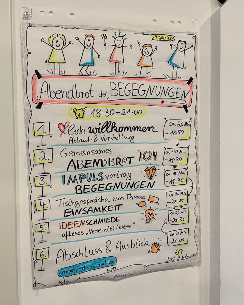 Das „Abendbrot der Begegnungen“ war ein Abend, der in schöner Erinnerung bleibt und gerne wiederholt werden darf, war die einhellige Meinung der Teilnehmenden. Mit ehrlichem Austausch, vielen neuen Ideen und einem Gefühl von: Wir können was bewegen.