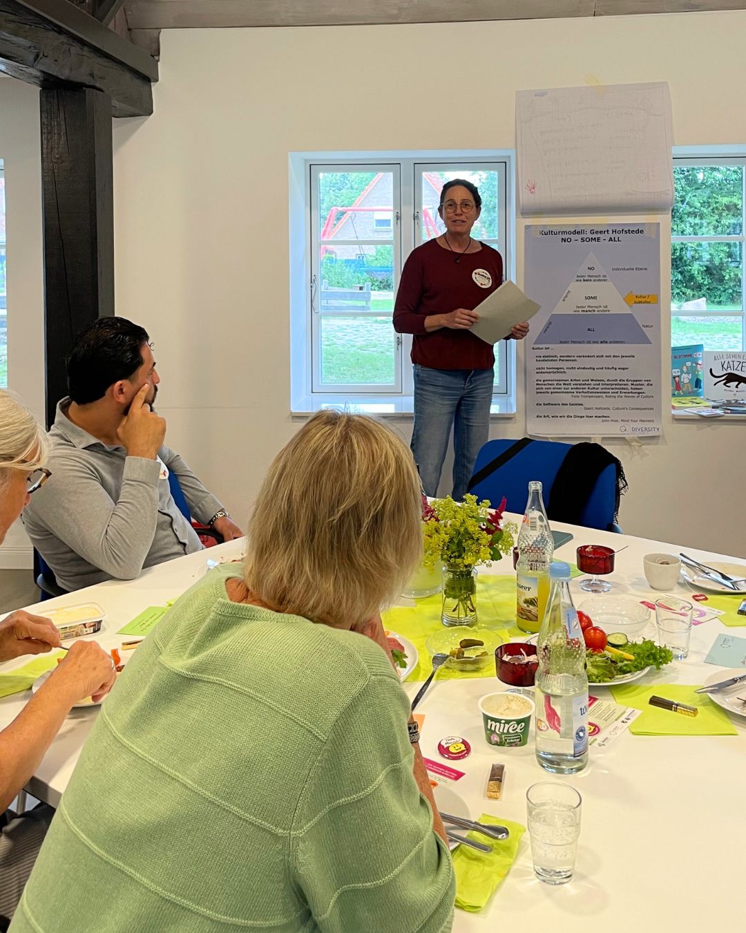 Ein Highlight des Abends war der Impulsvortrag der interkulturellen Trainerin Mareike Brombacher, die mit Leichtigkeit und Tiefe über Begegnung, Vorurteile und den Mut zum offenen Blick sprach. Ihr Satz „Die Menschen wollen ja nicht ärgern“ brachte viele zum Nachdenken – und öffnete die Herzen. Kleine Missverständnisse im Alltag wurden greifbar, das Schubladendenken hinterfragt, neue Sichtweisen möglich.