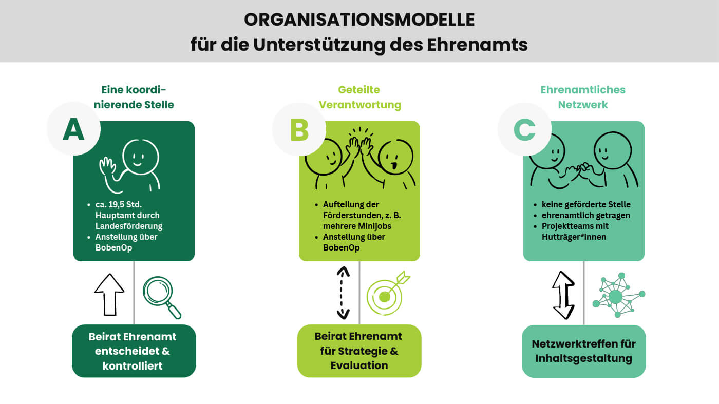 - Koordinierungsaufgaben („Ehrenamt braucht Hauptamt“)