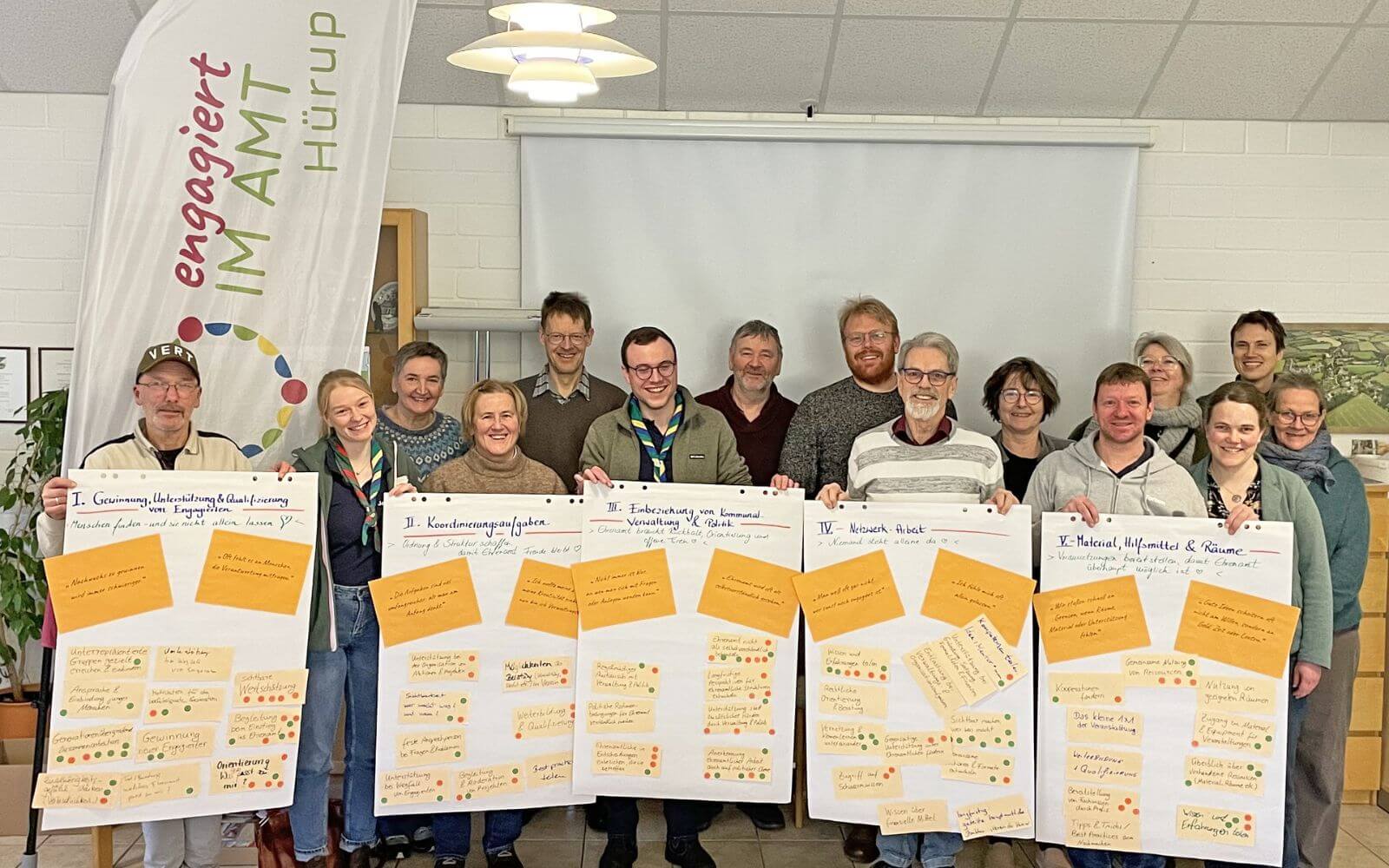 Ein besonderer Dank geht an Astrid Fustmann, die den Workshop mit großer Klarheit, Ruhe und Fingerspitzengefühl moderiert hat, sowie an Bürgermeister Claus-Peter Richelsen, der den Prozess aktiv unterstützt, Präsenz gezeigt und den Stellenwert des Ehrenamts im Amt Hürup deutlich gemacht hat.